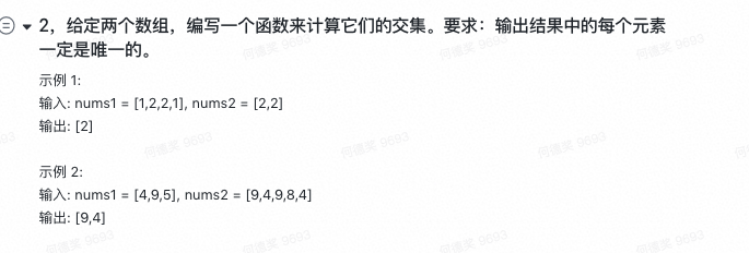 2 给定两个数组,编写一个函数来计算他们的交集,且输出值唯一